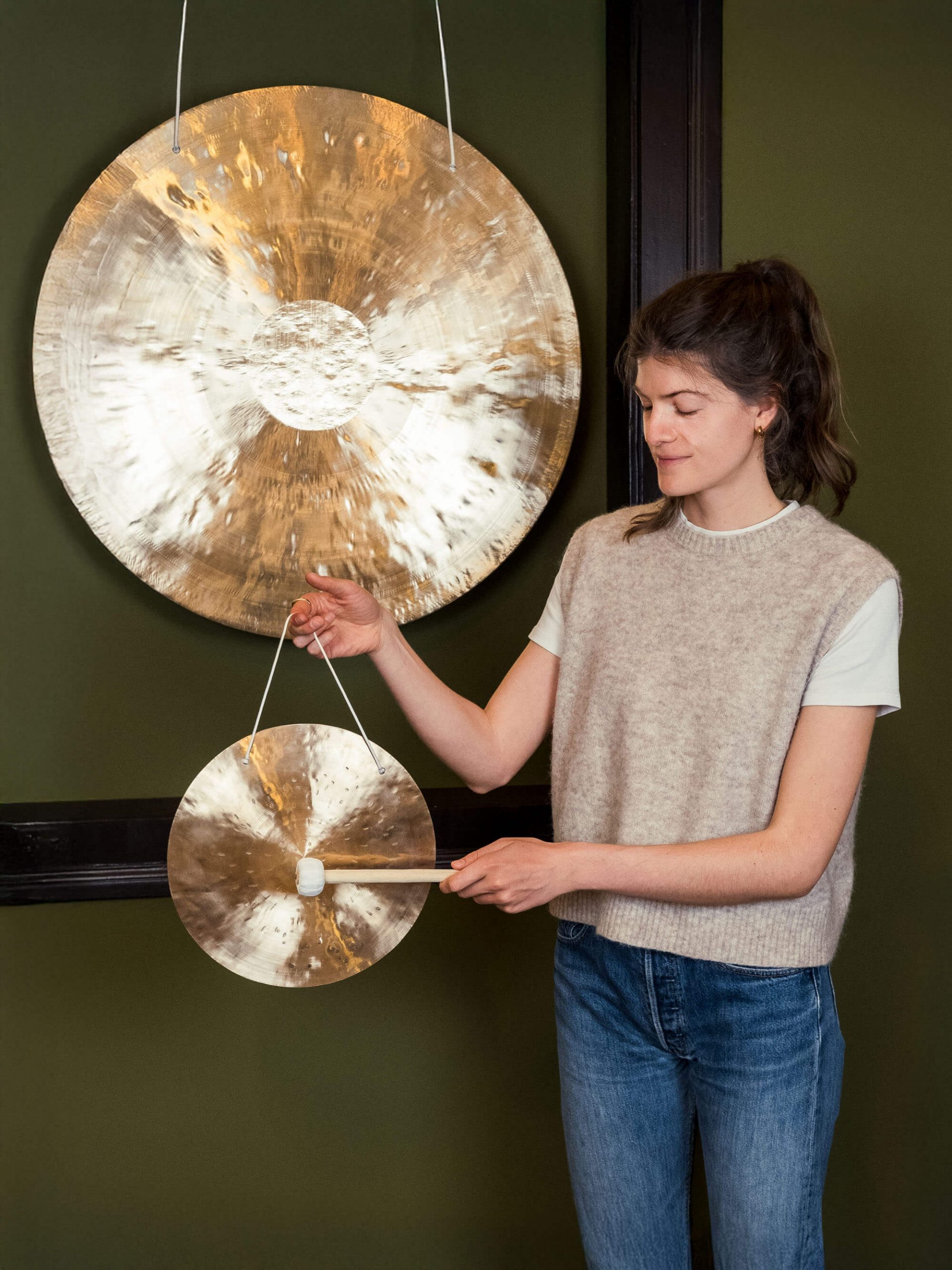 Unsere Gongs sind in verschiedenen Durchmessern erhältlich – von kompakten 35 cm bis zu raumfüllenden 80 cm. Je größer der Gong, desto tiefer und kraftvoller der Klang.